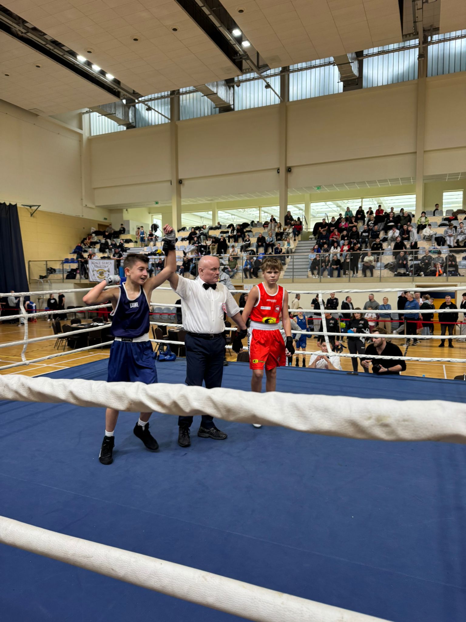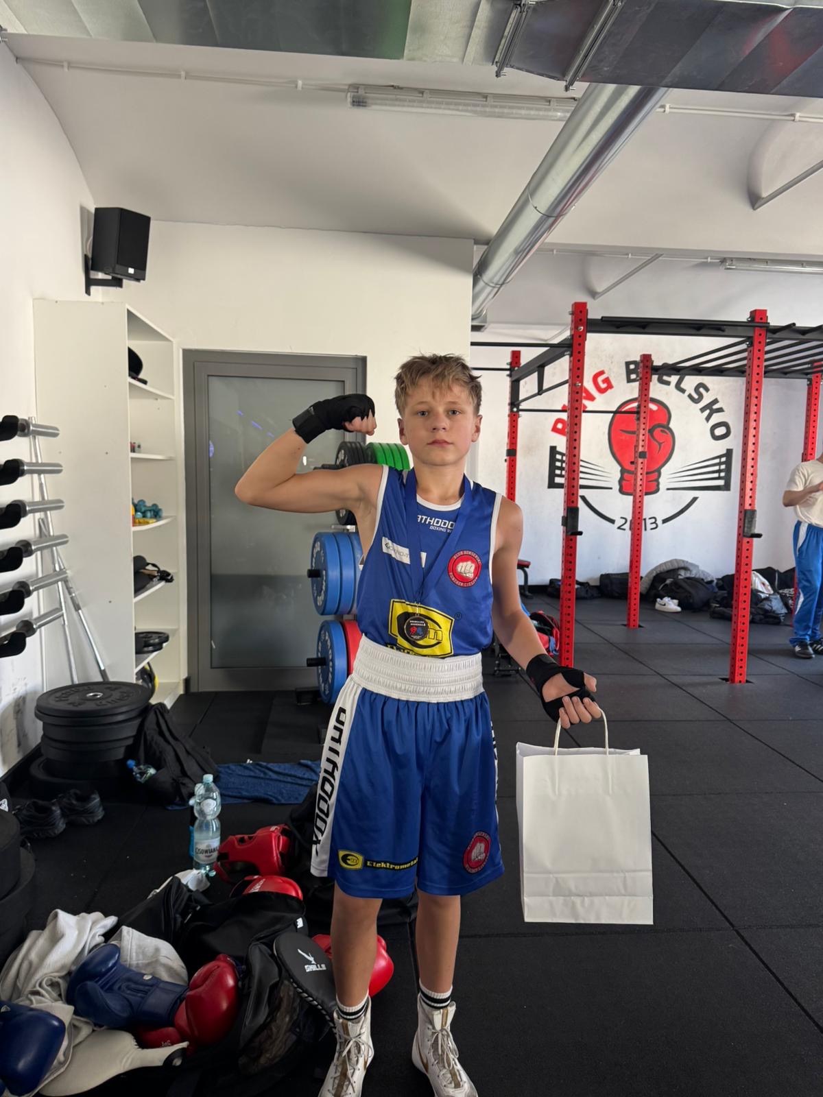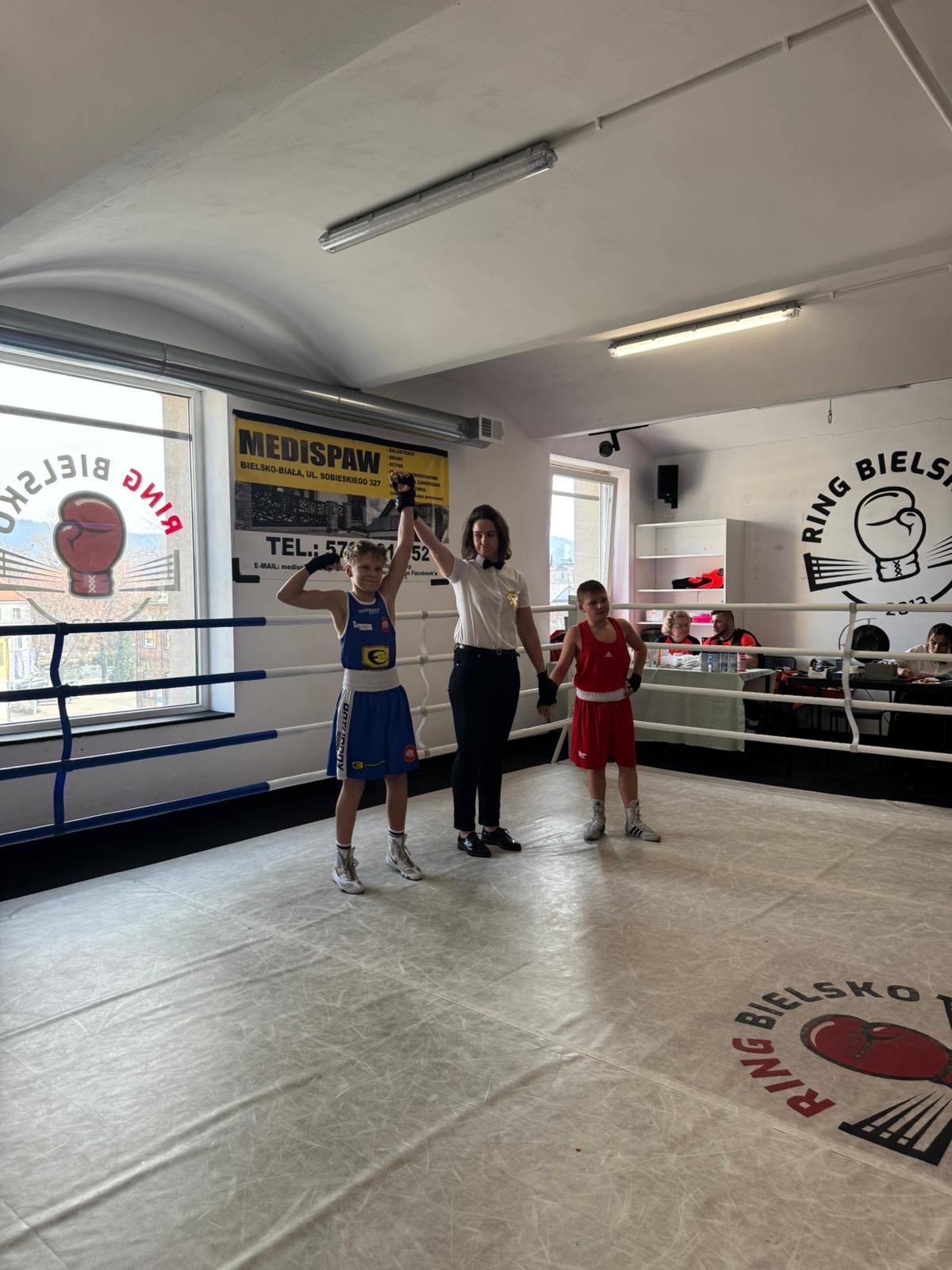 - Krzysztof Posiak wygrywa swoją walkę w kategorii 44 kg młodzik.