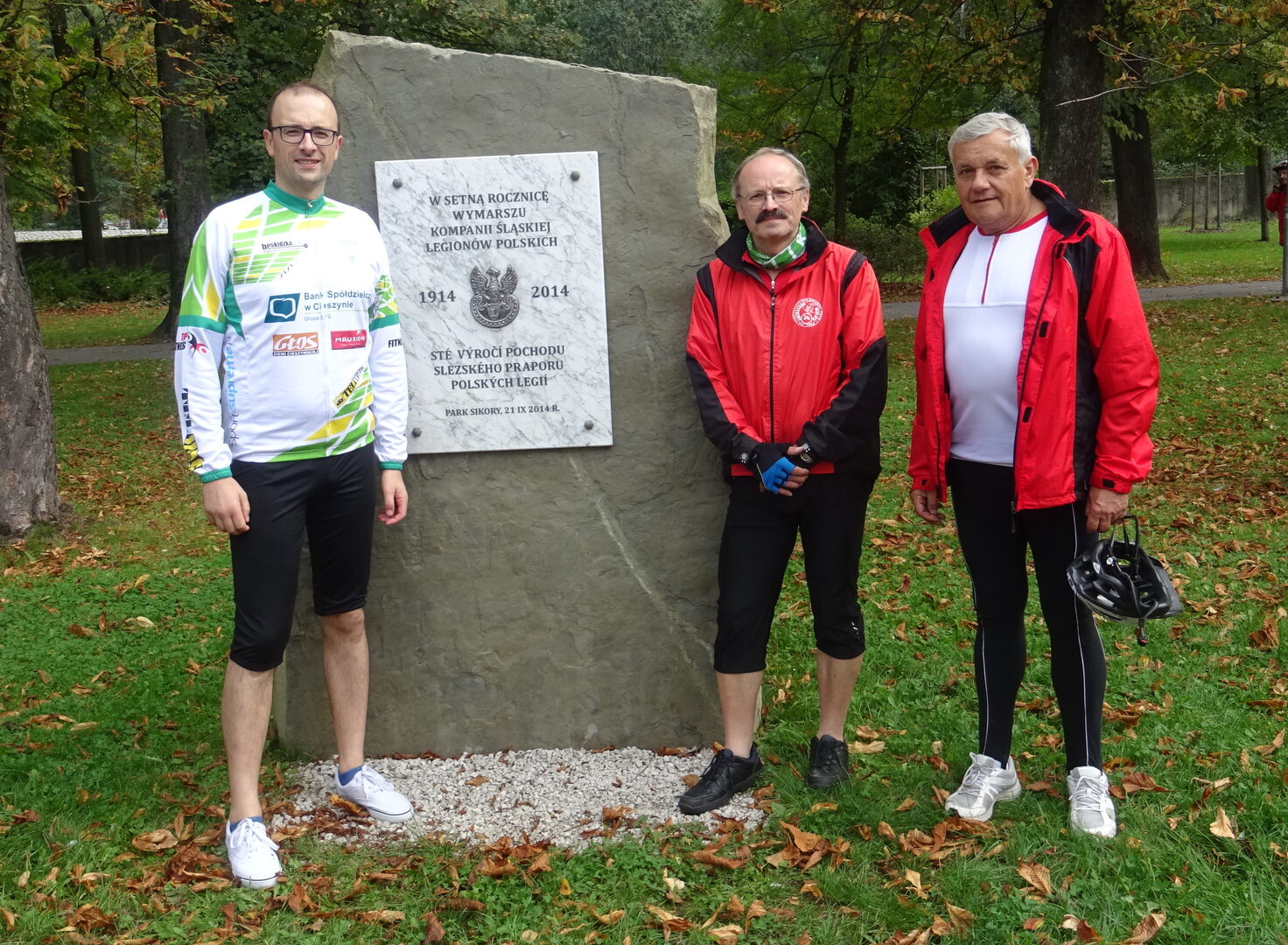 Pan Henryk Franek, lider Klubu Rowerowego „Przerzutka” i współorganizator wydarzenia poprosił o prowadzenie pierwszego etapu p. Janusza Króla Starostę Powiatu Cieszyńskiego, po czym lokalnymi drogami wyruszono w stronę Kończyc Małych, gdzie zapalono znicz pod krzyżem upamiętniającym miejsce tragicznej śmierci kpt. Cezarego Hallera w 1919 r. Kolejny znicz pamięci zapłonął również przy pomniku ofiar I wojny światowej w Kaczycach. Na punkcie etapowym, który zorganizowano w bibliotece gminnej w Pogwizdowie do sztafety dołączyło następnych ponad 20 uczestników. Zebranych serdecznie powitał p. Grzegorz Sikorski Wójt gminy Hażlach, który objął prowadzenie dalszej części rajdu. Tutaj również zaserwowano drobny poczęstunek oraz przeprowadzono quiz w formie testu tematycznie obejmującego okres od kształtowania się narodowej świadomości Polaków na Ziemi Cieszyńskiej w I połowie XIX w. do ostatecznego podziału regionu granicą w 1920 r.