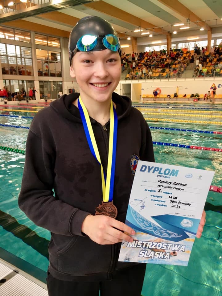 - Zuzana Pauliny – Fenomenalny start na 100 dowolnym (1:01.18) który daje V-ce Mistrzostwo Śląska w kategorii 14 latków,
