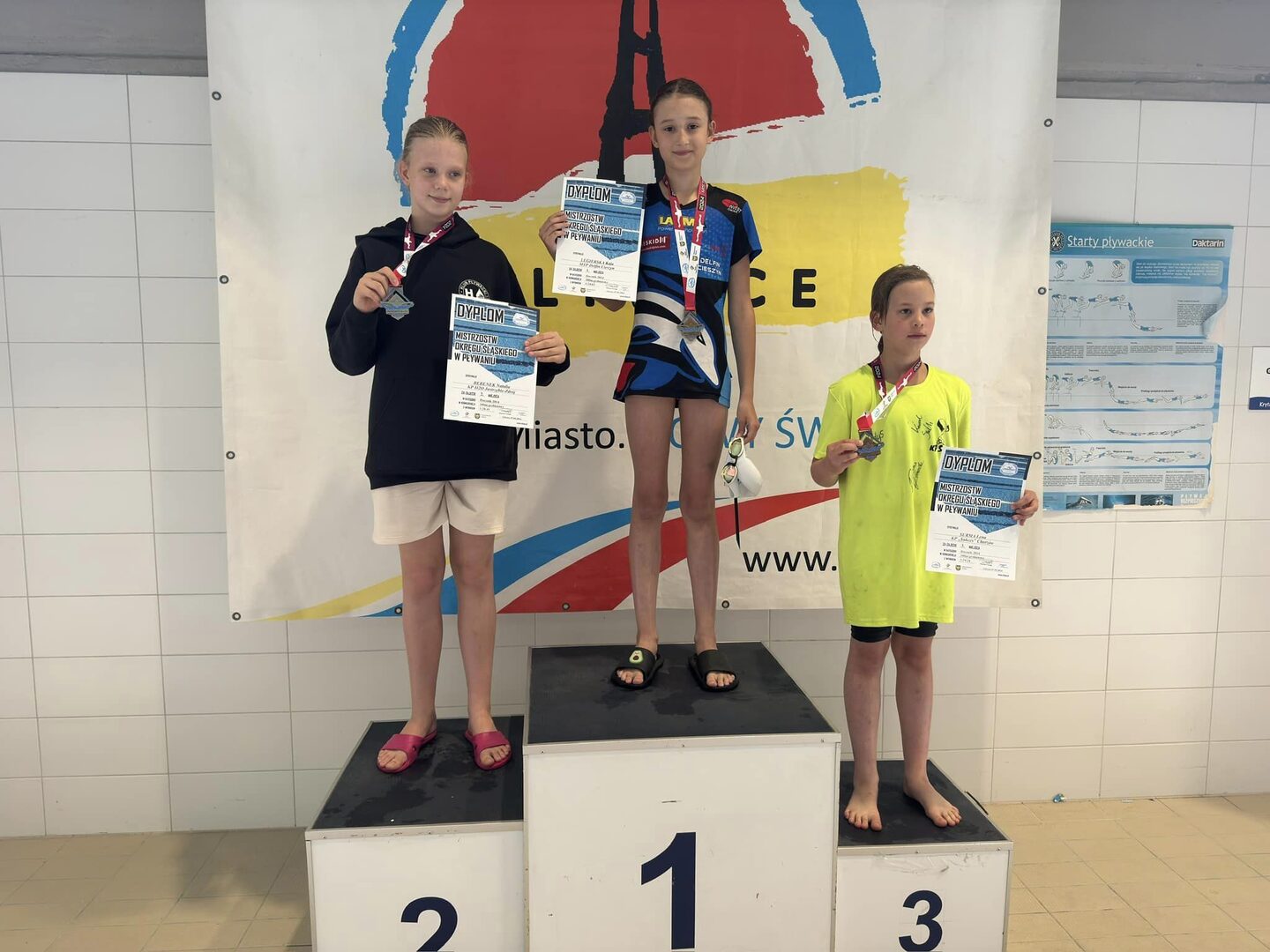 Zdobyliśmy dwa tytuły Mistrzyń Śląska w sztafetach 4x50 dowolnym oraz 4x50 zmiennym w składzie: Kaja Legierska, Julia Goryl, Nina Pilch, Katarzyna Sztefka.