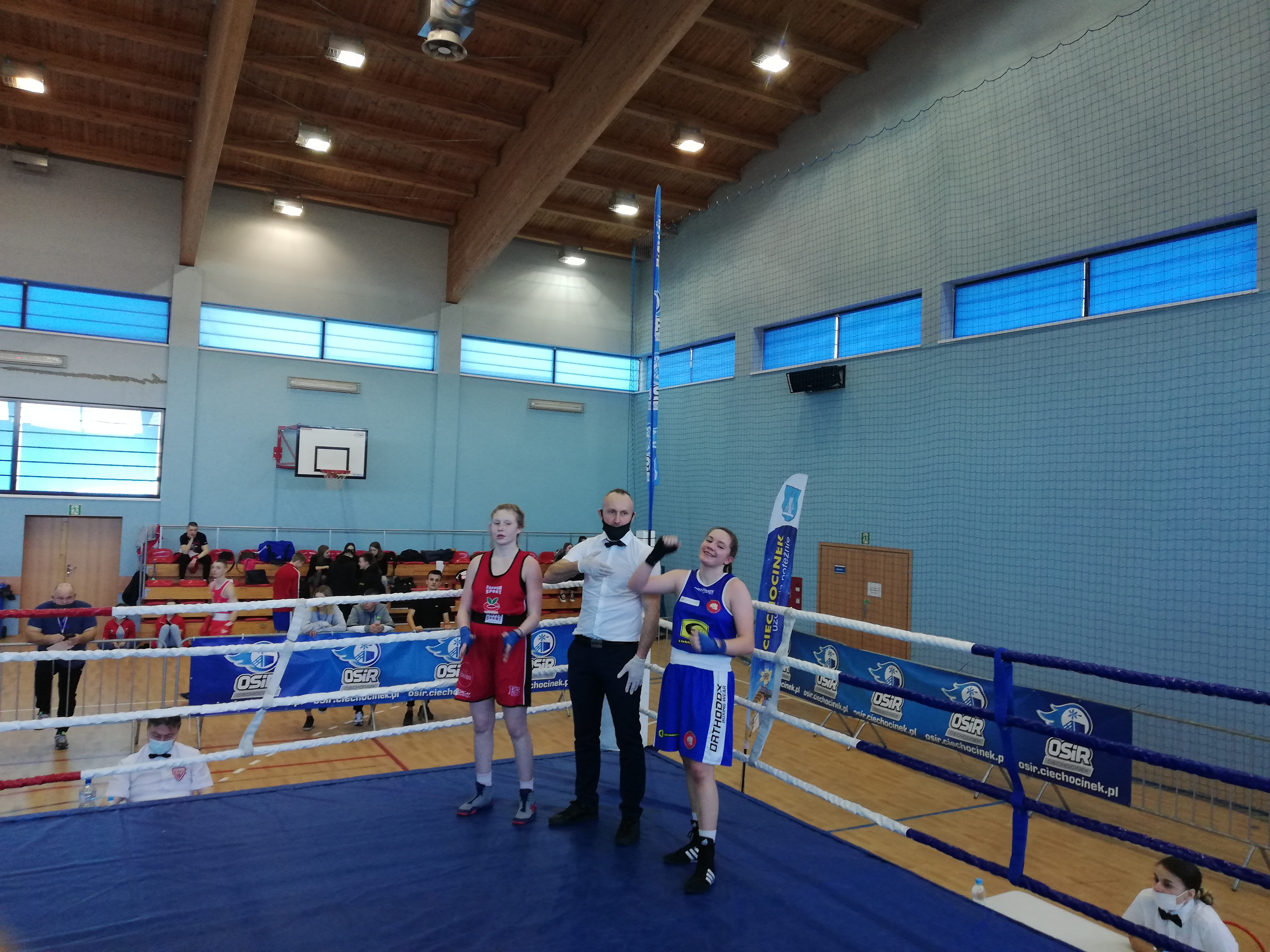 W dniach 25-28.02.2021 odbyły się I Eliminacje Kobiet do Ogólnopolskiej Olimpiady Młodzieży. Klub Bokserski Puncher Cieszyn reprezentowały dwie zawodniczki siostry Sonia Kaleta i Nina Kaleta. Pierwsza z nich po niesłusznym i krzywdzącym werdykcie 2:1 pkt odpadła w eliminacjach turnieju z zawodniczką Julią Muchajer. Natomiast Nina przechodząc eliminacje w półfinale odprawiła zawodniczkę z Libiąża Annę Burzyńską 3:0 pkt. Tym samym awansowała do finału w którym wygrała po bardzo dobrym pojedynku 2:1 pkt z Piasecką Wiktorią z Korony Wałcz i zajęła 1 miejsce w Eliminacjach do OOM. Zapewniła sobie tym sposobem minimum brązowy medal Mistrzostw Polski co jest wielkim sukcesem zawodniczki z Cieszyna. Druga z sióstr będzie musiała poczekać na kolejną szansę podczas drugich eliminacji, które odbędą się końcem marca. Życzymy powodzenia!