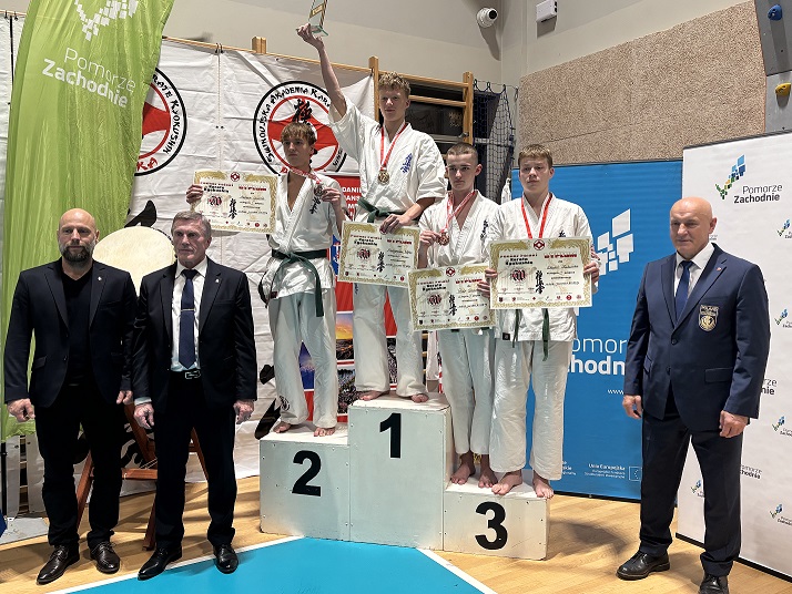 Adam Szydłowski – w kategorii kumite młodzików do 55kg. Już w pierwszych sekundach walki finałowej Adam zdobył waza-ari po precyzyjnym mawashi geri jodan (okrężnym kopnięciu na głowę), które zaskoczyło jego przeciwnika. Nie zwalniając tempa, Adam kontynuował ofensywę, kończąc pojedynek efektywnymi niskimi kopnięciami. Techniki te przyniosły mu kolejne waza-ri i zasłużony ippon, dzięki czemu zakończył walkę przed czasem, zdobywając złoty medal w swojej kategorii.