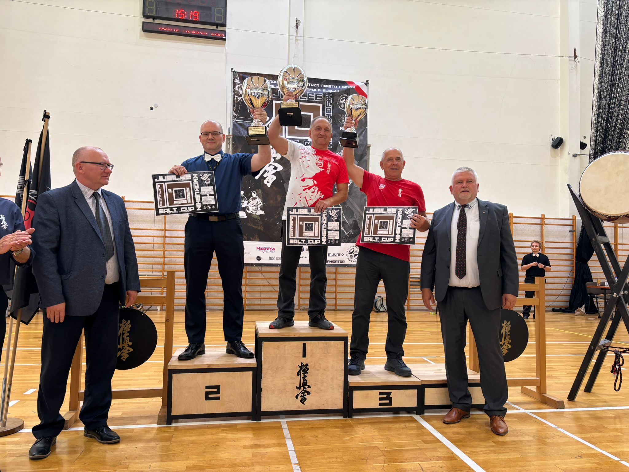 Adam Szydłowski – w kategorii kumite młodzików open. W drodze do złotego medalu musiał pokonać aż czterech rywalki. Ze wszystkich pojedynków Adam wyszedł zwycięsko uzyskując wyraźną przewagę, co potwierdzali sędziowie w swoich werdyktach po zakończeniu każdej z walk. Warto podkreślić że w jednym ze swoich pojedynków (ćwierćfinał) Adam znokautował swojego przeciwnika niskimi kopnięciami i zakończył tym samym walkę przed regulaminowym czasem (ippon).